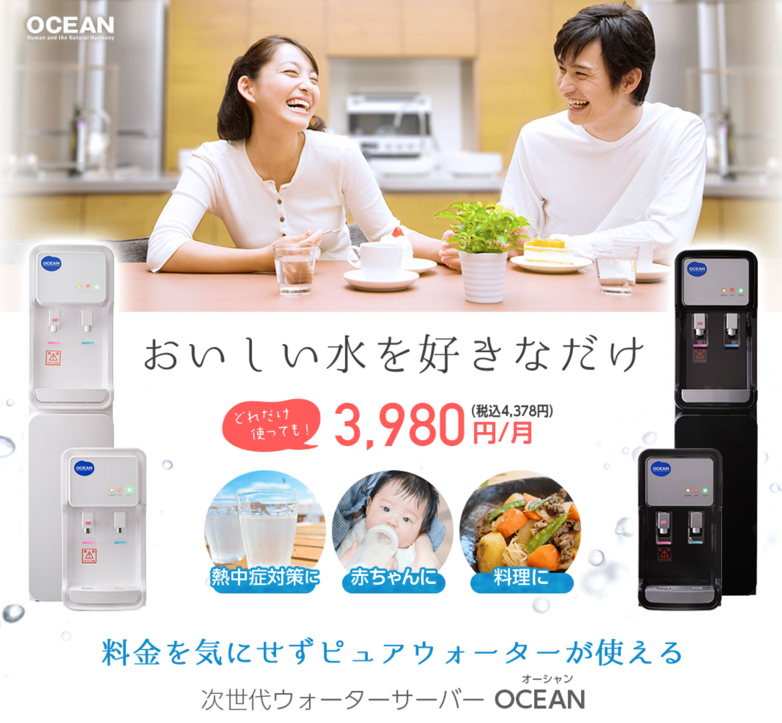 料金を気にせず、ピュアウォーターを好きなだけ。OCEAN次世代ウォーターサーバー