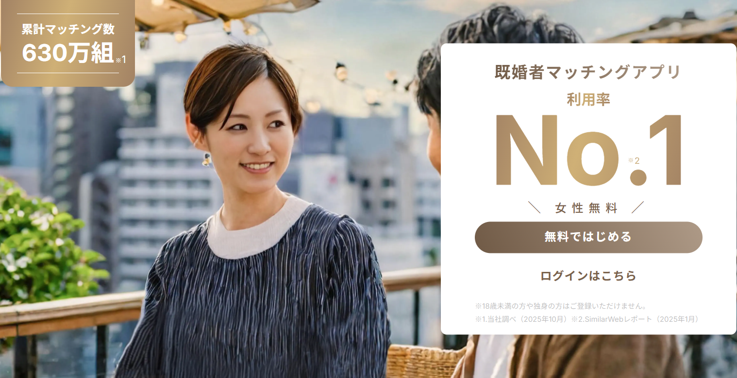 ・既婚者特有の悩みを共有できる相手が欲しい方 ・家庭とは別の刺激や癒しを求めている方 ・既婚者同士で理解し合える関係を築きたい方 ・身バレを気にせず安全に利用したい方 ・セカンドパートナーや既婚者フレンドを探している方 ・趣味や食事を一緒に楽しめる相手が欲しい方