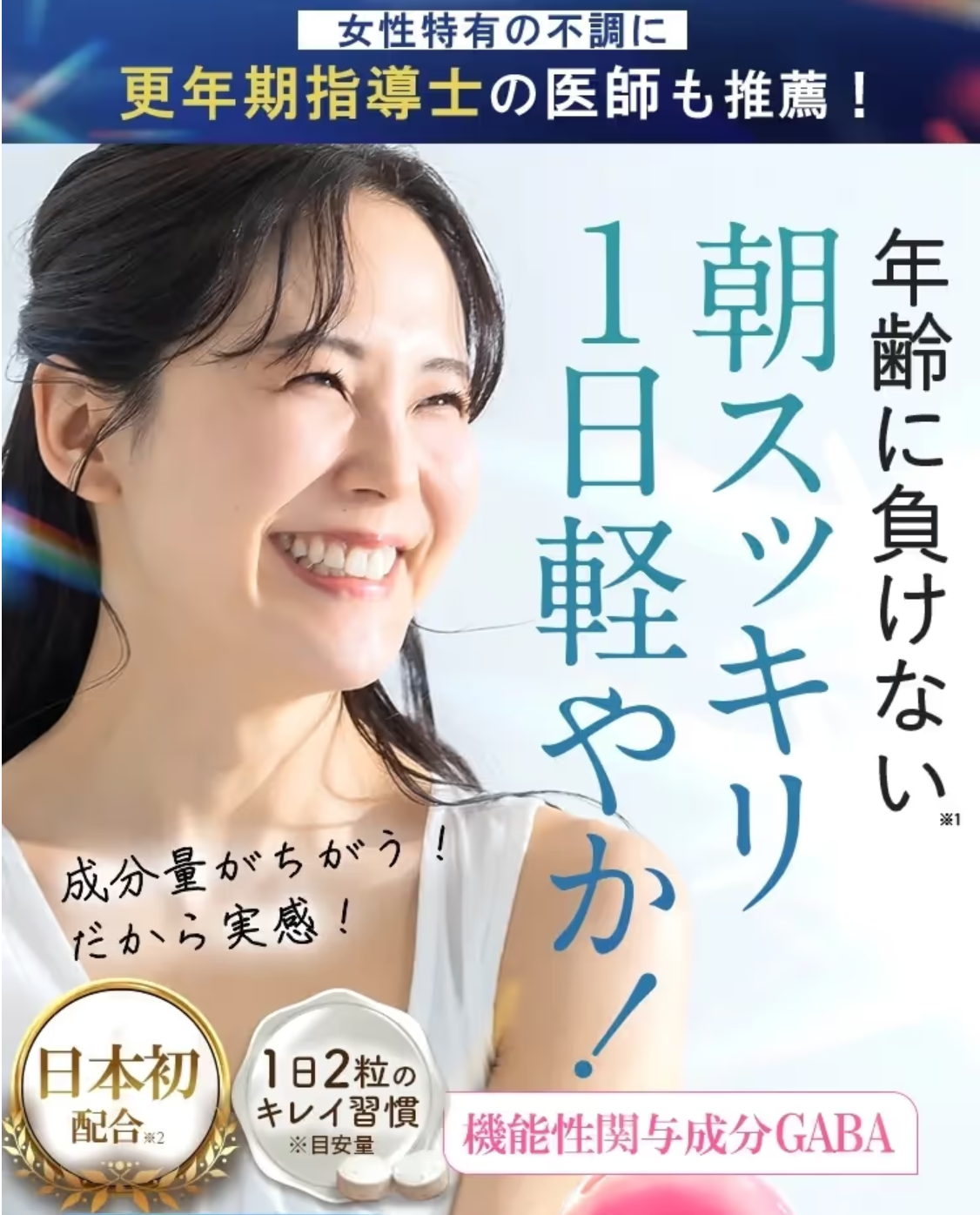 ・40代以降のゆらぎ期の不調に悩んでいる方 ・夜中に目が覚める、睡眠の質が悪いと感じる方 ・疲れやすく、朝起きるのが辛い方 ・イライラしやすい、気分が落ち込みやすい方 ・肌の乾燥や弾力低下が気になる方 ・科学的根拠のあるサプリメントを探している方 ・更年期対策を始めたい20代・30代の方